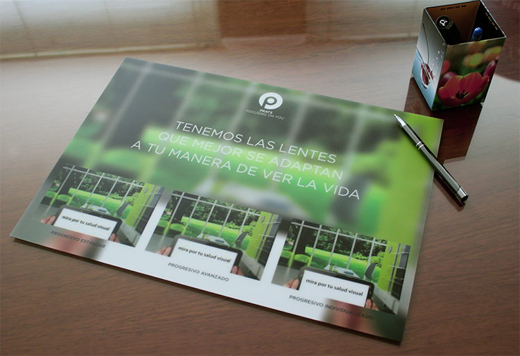 Nuestro cliente ha decidido promocionar su empresa mediante este tapete salva-mostrador, realizado en polipropileno transparente e impreso por detrás en espejo y fondeado blanco.